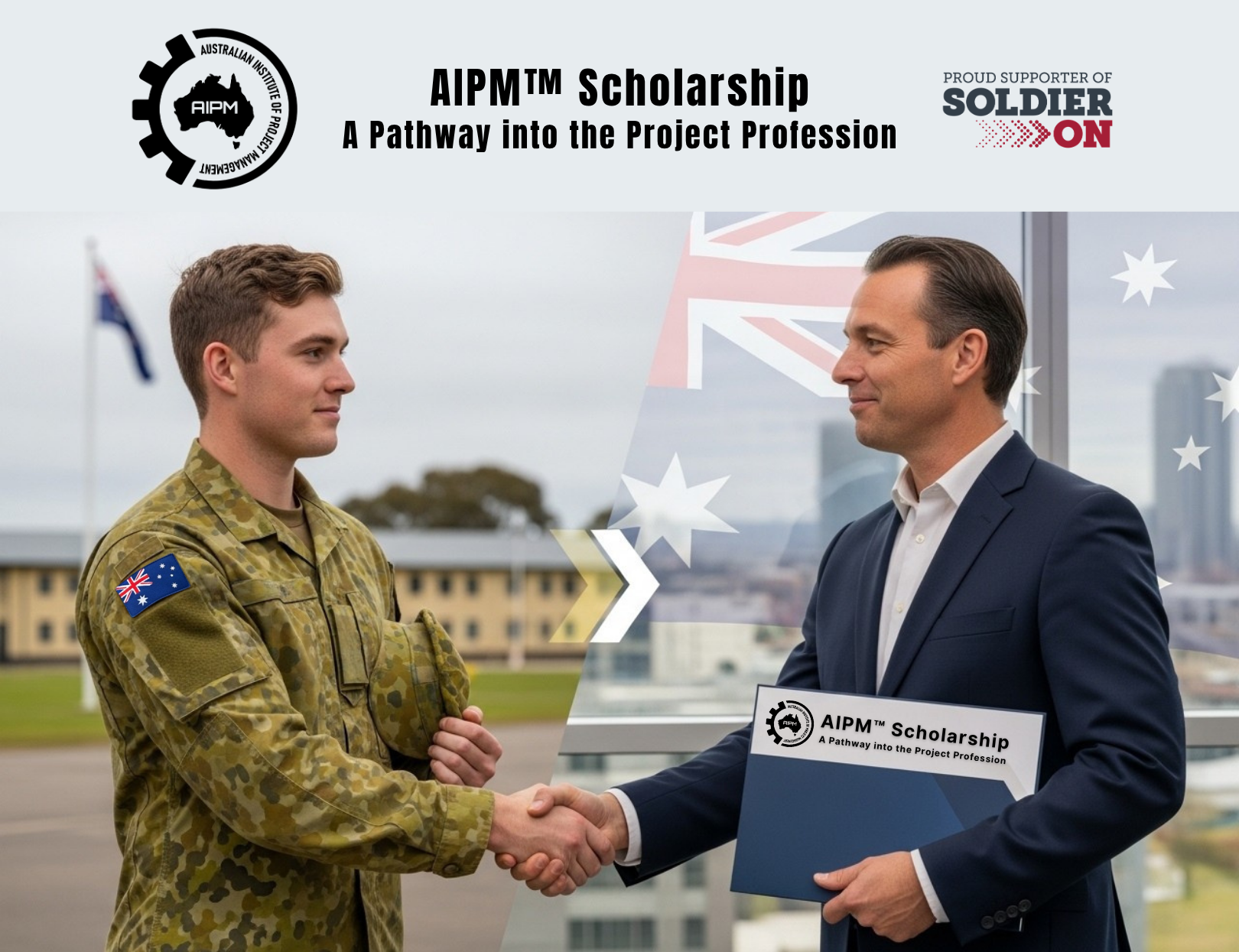 The Australian Institute of Project Management (AIPM™) is proud to partner with Soldier On to offer an annual scholarship designed to support transitioning ADF members, veterans and their families as they transition into rewarding civilian careers.